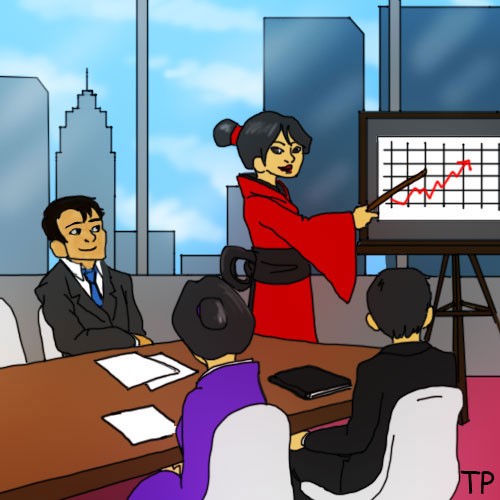 12) CEOs of 100 Japanese corporations with at least 1,000 employees to individually come onto her show and officially announce their corporations will give all of their female employees a 10% salary bonus if they agree in writing to only wear kimonos to work and then do so.